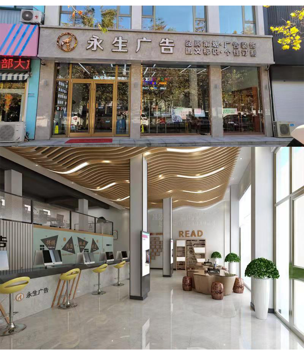 公司自有數(shù)碼沖床設(shè)備、500W光纖機(jī)、高精度大幅面噴繪機(jī)、寫(xiě)真機(jī)、UV機(jī)、多種大小型雕刻機(jī)、吸塑機(jī)、全自動(dòng)圍字機(jī)、自動(dòng)開(kāi)槽機(jī)、激光焊接機(jī)、拋光機(jī)等生產(chǎn)加工設(shè)備,擁有完善的設(shè)計(jì)團(tuán)隊(duì)、技術(shù)團(tuán)隊(duì)、施工團(tuán)隊(duì)、售后團(tuán)隊(duì),可為廣大客戶提供室內(nèi)裝修、店招門頭、精神堡壘、黨建標(biāo)識(shí)、標(biāo)識(shí)標(biāo)牌、宣傳欄、LED顯示屏、警示標(biāo)識(shí)、精品字、證卡胸牌、證書(shū)獎(jiǎng)杯、燈箱、桌牌、定制禮品、展具、噴印等多種專業(yè)廣告服務(wù)...